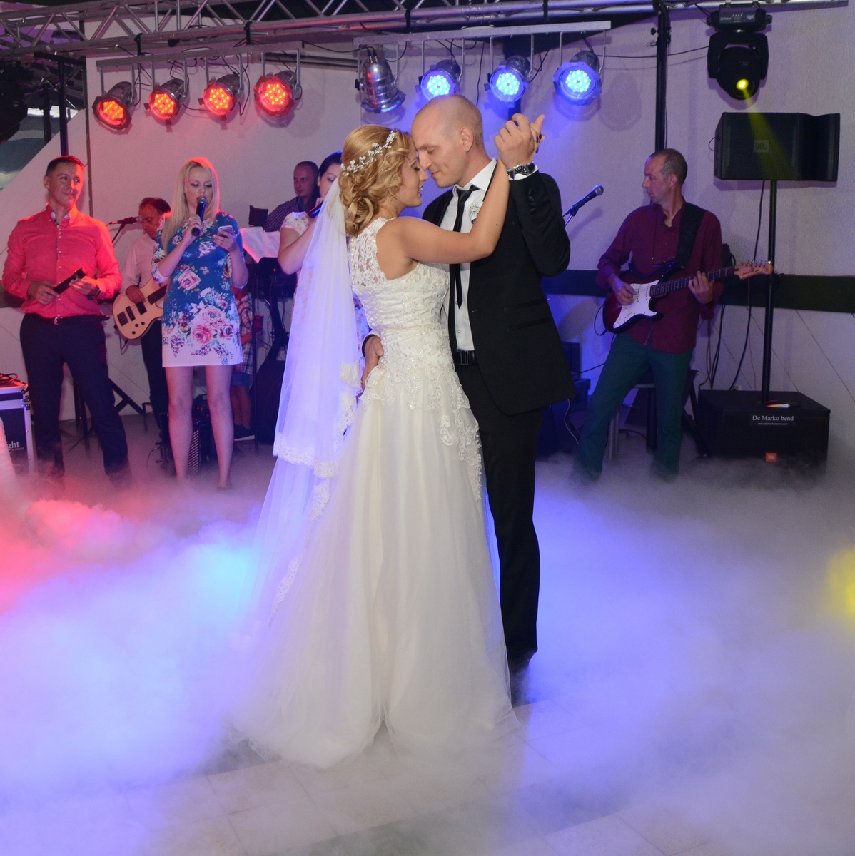 Mladenci su toliko blistali, da je tu sreću bilo nemoguće sakriti. Posebno kada su zaplesali prvi ples i osmehom pozdravljali okupljene goste. Dok su devojke i momci iz De Marko benda zabavljali mladence,prijatelje i rodbinu…Ekipa De Marko light & sound se pobrinula da plesom u oblacma uplove u zajednicki život…